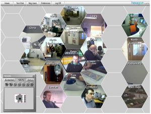 Our policy for the use of the KMi Hexagon room is that it is a *Private*, *Working* room only accessible by members of KMi. All members of KMi have an account, can get a camera, and can join this working space to share presence and lightweight working interactions. (If you are not in there just yet, talk to Lewis, Jon or Kevin!)