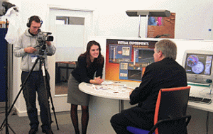 A television crew from Illumina TV (who produce the ‘Learning Curve’ programme for Sky’s Technology channel) visted KMi and Earth Sciences to pick up the story of the Virtual Microscope. Professor Tom Vincent provided an introduction by describing the wide range of research activities undertaken in KMi and how the link had been established with Earth Sciences when the need for a Virtual Microscope was first identified. Tracy Carlton went on to explain and demonstrate the latest version of the Virtual Microscope being used for OU Foundation Science and Geology courses. Transmission date is not yet known.