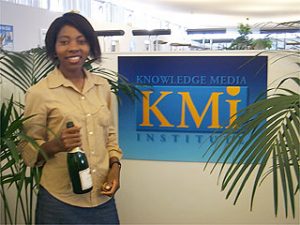 Yesterday Daisy Mwanza successfully completed her viva for the award of PhD. The viva was held in IET and did not finish until late afternoon, so today she came over to share a bottle of champagne with her friends and colleagues from KMi.