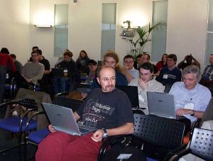 Yesterday saw 60 researchers from academia and industry come to KMi for the first AKT sponsored workshop on semantic web services. The purpose of the one day workshop was to bring together relevant members of the AKT project and the wider research community associated with semantic web services. Web services are reusable program components which can be invoked over the internet through an XML based interface and, as such, have attracted considerable interest from both academia and industry. Industrial interest has focused on using web services for enterprise wide application integration and as a baseline for implementing business processes. Research in semantic web services aims to apply semantic web technology to automate or semi-automate the tasks associated with the construction and deployment of web service based applications. More specifically, to support the tasks of discovery, mediation, composition and invocation. Ten papers were presented in the morning including four from KMi researchers. The afternoon began with the panel Which Semantic Web Service Standards?? where panellists described the strengths and weaknesses of approaches based on activities related to OWL-S, SWSI, WSMO and the IRS. After the panel session the majority of the afternoon was dedicated to focused discussion groups on the areas associated with mediation, composition, semantic descriptions of web services and on the relationship between semantic web services and the MIAKT Grid project. The workshop closed with a demo session where participants were able to examine a number of semantic web service related tools in detail. The workshop attracted considerable interest both from within the AKT project and from external researchers. In addition to our AKT partners, the workshop had participants from British Telecom, De Montfort University, the Digital Enterprise Research Institute at Innsbruck, Essex County Council, Hewlett-Packard, Leicester University, Universidad Polit�cnica de Madrid, the University of Manchester, and the University of Karlsruhe.