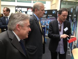 During the tour of Open Unversity innovation highlights, the Duke met with KMi Director, Professor Peter Scott, and KMi research student Drahomira Herrmannova. Peter introduced the Duke to our interactive book research and work in iTunes U and provided a perspective on ‘post personal computing’, and Dasha discussed ‘Big Data’ and learning analytics research.