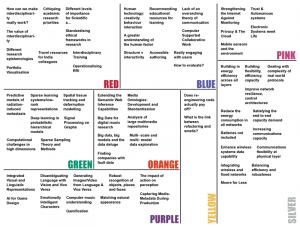 Network coordinators independently placed unique stickers onto the hexagonal keyword map to indicate areas of interests within their networks thus creating an immediate visualisation of coverage. As a side effect, this also identified areas in the remit of EPSRC that were not covered by networks. Expressions of interest from different networks in the same areas were taken as promising leads for possible collaboration between research networks, which was then used to structure the remaining networking time.