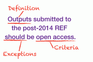 A new policy stating that research outputs submitted to post-2014 REF should be Open Access has been announced on Monday, March 31st accompanied with a circular letter to all UK Vice-Chancellors and Principals (see the link below). The policy requires all journal and conference publications with a UK HEI author to be deposited in an institutional or subject repository on acceptance for publication. Publications not compliant with this requirement, including those that are made Open Access only retrospectively, will not be eligible for submission in the next REF exercise. The policy is a fantastic news for all those who support unrestricted access to knowledge for all. It will enable millions of people who have been consistently denied access to research outputs, such as high school students, small and medium enterprises, government and the general public, to get access to the results of research funded by the taxpayer.