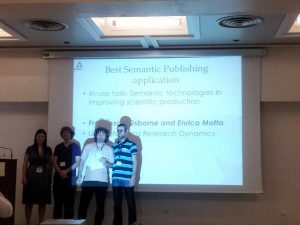 The groundbreaking Rexplore system for analysing scholarly data was awarded first prize, as Best Semantic Publishing Application, at the “Semantic Publishing Challenge”, which was held in the context of the 11th Extended Semantic Web Conference. Rexplore was chosen from a number of innovative Semantic Web applications by a jury comprising both researchers and commercial publishers. The award was given on the basis of a number of criteria, which included potential impact, originality, technological advance, and quality of the demonstration. In particular the demonstration was so successful that it was only allowed to finish well over two hours after the expected end time.