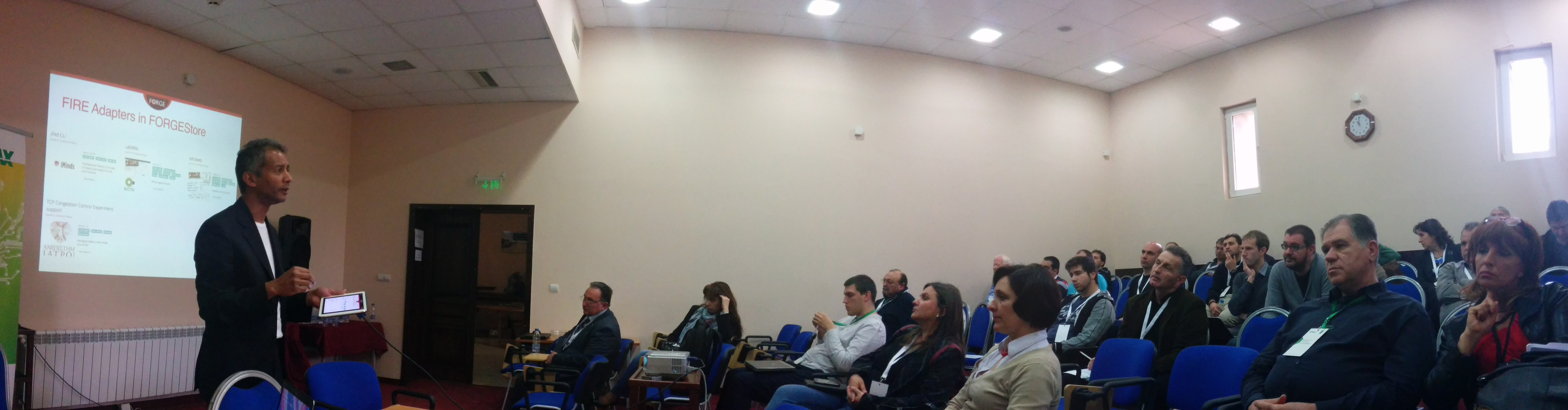 Last week, a two-day event was held in Troyan (Bulgaria) to present new ICT solutions to Bulgarian universities. In this event, John Domingue presented the FORGE project to members of Bulgarian universities. The audience become aware of the possibility of using FIRE‘s experimentation facilities for teaching purposes and how FORGE can facilitate this. Particularly, John presented the ongoing Open Call which will provide training and support to any associate partner interested in reusing or creating new courses using FORGE’s tools and processes.