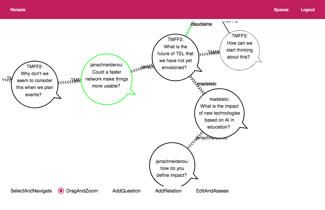 Tracie’s workshop was about hands-on collaborative and social learning in Technology-Enhanced Learning. Participants were given the opportunity to try out two pieces of innovative software, both of which leverage digitalisation to add value to already validated, social pedagogical concepts. "Noracle", for example, was originally a face-to-face method for representing different perspectives through question-based dialogue (in which only questions are used as speech acts). The digital tool, a distributed Noracle, makes it possible to explore and map community ignorance through question-based dialogue, asynchronously and without a formal infrastructure. The tool uses a peer-to-peer architecture to safe-guard the community’s outputs and reduce the costs involved with centralisation. The second tool, the SOIL project, transfers the concept of creating flashcards to a digital space, to support Social MicroLearning. Participants tested the early stage software and provided valuable feedback for future development.