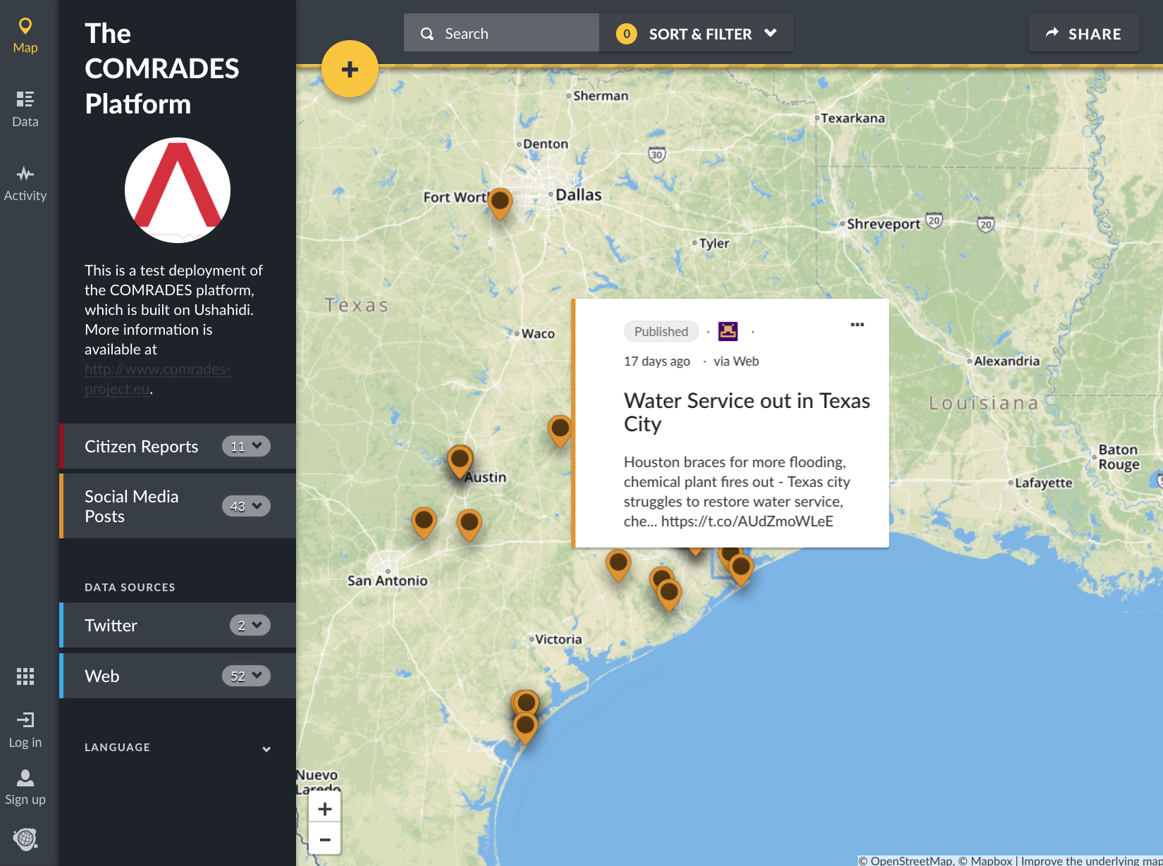 COMRADES team organised a 3 day exhibition at ICT 2018 in Vienna, to showcase the various technologies developed in H2020 COMRADES project. More than 5000 people attended the event this year, so the COMRADES booth was super busy! Visitors to the booth were able to see and use a crisis mapping platform that was powered with AI technologies to automatically filter, categorise, and verify crisis information shared on Twitter.