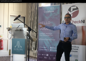 KMi was invited to present the Co-Infom project at the event "Why does fact checking matter?" which was organised by FactCheckNI as part of the Imagine! Festival in Belfast. The event focused on the importance of fact checking from the perspectives of fact checkers, data scientists, journalists, and academics.