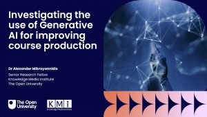In his talk, Alexander shared initial results from an ongoing internal project at the Open University, aiming to investigate the use of Generative AI for improving the production of learning materials. In particular, Alexander discussed the views of different teams of academics that are involved in course production at the Open University, on how Generative AI tools, such as ChatGPT, can potentially assist them and help make course production more agile and efficient.