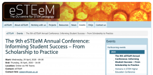 The 9th eSTEeM conference took place online on April 29-30, 2020. The conference is organised annually by the Open University, UK. Entitled "Informing Student Success – From Scholarship to Practice", this year’s programme has been a mix of short orals, workshops and poster presentations, showcasing scholarship work conducted by STEM colleagues.