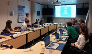 Lara Piccolo, Miriam Fernandez, and Harith Alani from KMi travelled to Brussels last week to run the successful first review of the FP7 CAPS DecarboNet project. Harith Alani; the coordinator of DecarboNet, told the reviewers in his opening presentation to ‘Keep Calm, because the best is yet to come’ from this three year project.