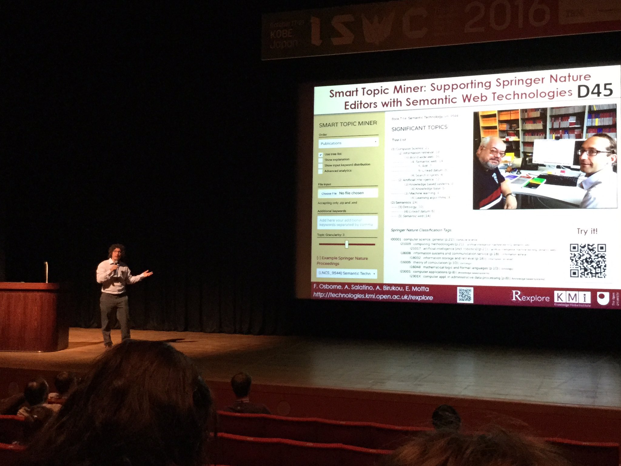 The application track was also well covered by KMi-ers, with Gregoire Burel ("EnergyUse – a Collaborative Semantic Platform for Monitoring and Discussing Energy Consumption"), and Francesco Osborne ("Automatic Classification of Springer Nature Proceedings with Smart Topic Miner"), both presenting in this track.