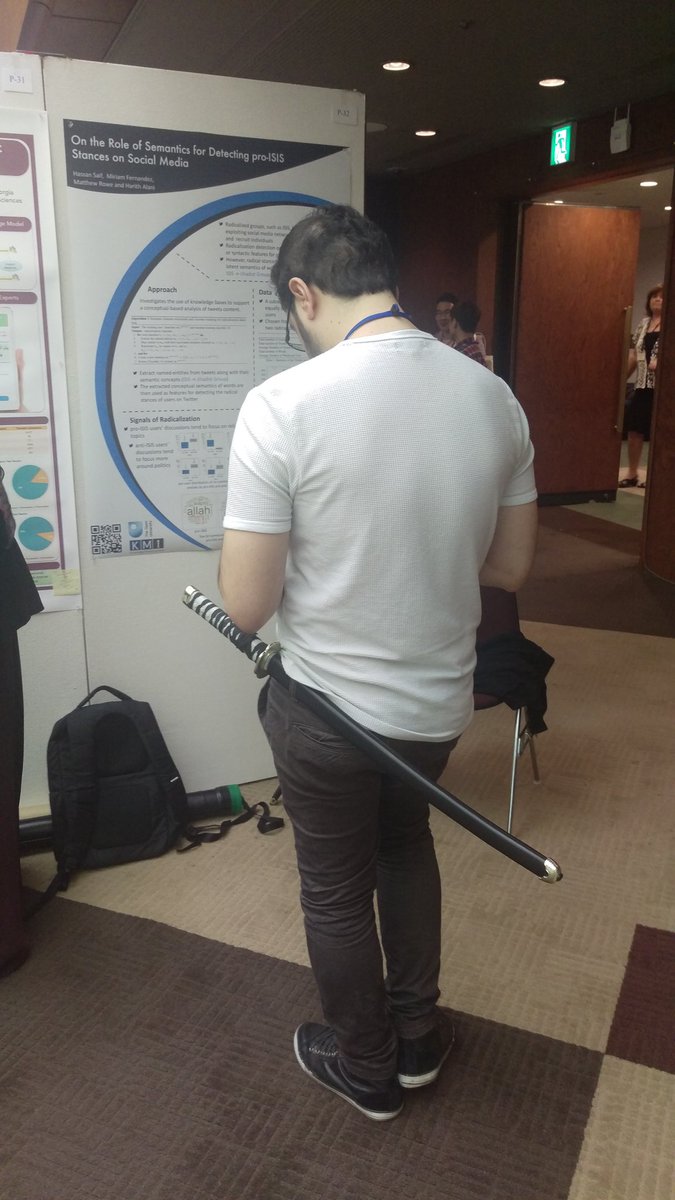 Hassan also presented an expert highlights paper in the workshop on Linked Data for Information Extraction, "A Linked Open Data Approach for Sentiment Lexicon Adaptation" and contributed to the Posters & Demos session, with a poster entitled "On the Role of Semantics for Detecting pro-ISIS Stances on Social Media". There were also two demos presented by KMi-ers – Gregoire Burel, "Monitoring, Discussing and Publishing Energy Consumption Data using EnergyUse", and Francesco Osborne, "Smart Topic Miner@Supporting Springer Nature Editors with Semantic Web Technologies". See more at: http://kmi.open.ac.uk/news/article/18881#sthash.vt0Cetws.dpuf