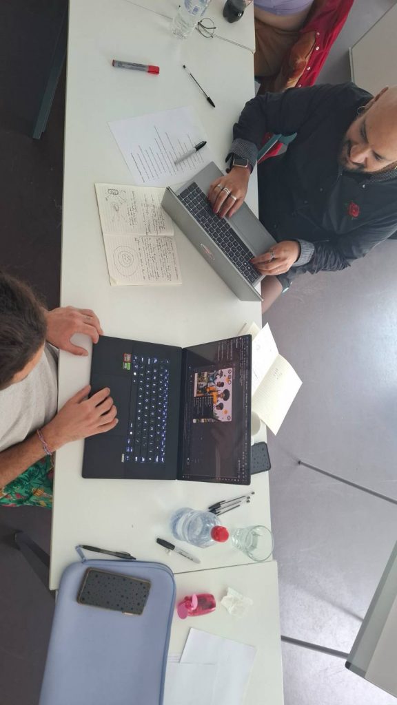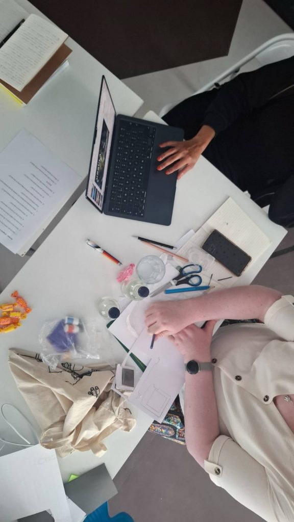 Participants were selected from networks in London and Berlin, where both Farrell and Rosenfeld are active. The 2.5-day workshop began with a full day of knowledge exchange, where each participant shared an interactive practice that reflected their unique approach to knowledge-making—ranging from intuitive writing and movement to AI research and design.