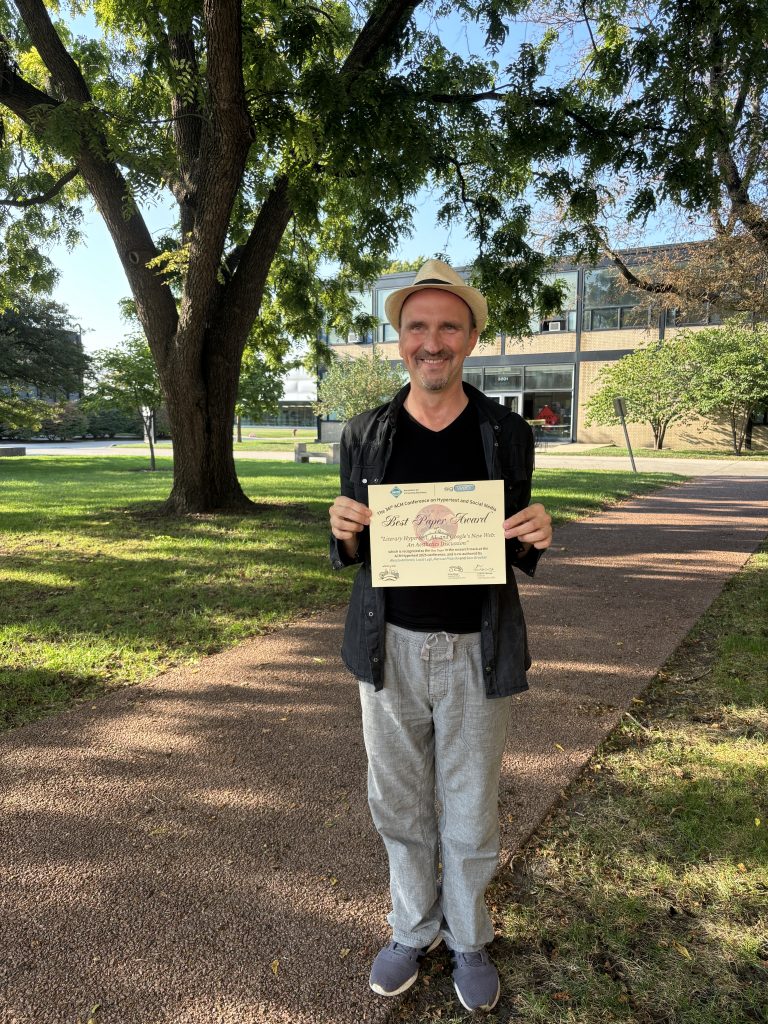 Mariusz, who gave the presentation, holding the Best Paper Award.