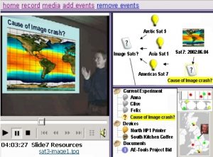 CoAKTinG will provide tools to assist scientific collaboration by integrating “intelligent meeting spaces” (understanding when key events happen at a meeting) with techniques for taking live video and audio streams from internet-hosted meetings and annotating them with semantic tags to assist later retrieval and analysis. To this mix, KMi is adding its BuddySpace enhanced presence management and instant messaging tools, and another of its pioneering approaches called Compendium which helps capture the information generated in a discussion in the form of a visual “group memory” available to all stakeholders. Even those who missed a key discussion will be able to re-live it afterwards: a BuddySpace alert will take them straight to the relevant Compendium diagram, provide schematic highlights of the pros and cons of the debate, and let them jump directly to an “instant replay” of the video and audio streams that were recorded at that point in the discussion!
