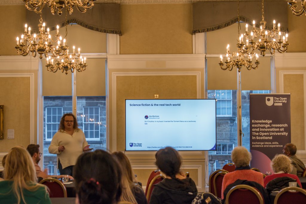 KMi’s John Domingue and Aisling Third have just completed a mini tour of Scotland, arranged in conjunction with OU in Scotland, which was a great success. Specifically, they gave two presentations on “Generative AI: Hopes and fears”, in Dumfries (at Easterbrook Hall) and in Edinburgh (at The Royal Society of Edinburgh).