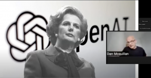 Dr. Dan McQuillan followed with his talk on “Resisting AI,” providing a critical perspective on the necessity of resistance against certain AI applications with their societal and ecological consequences. His talk delved into the link between AI technological advancement to the contemporary political and social currents such as global austerity and the rise of the far right.